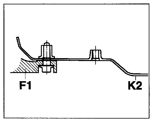 - Do not install front-axle cross members with one fastening screw (F1) in vehicles with two body mounting points (K2).