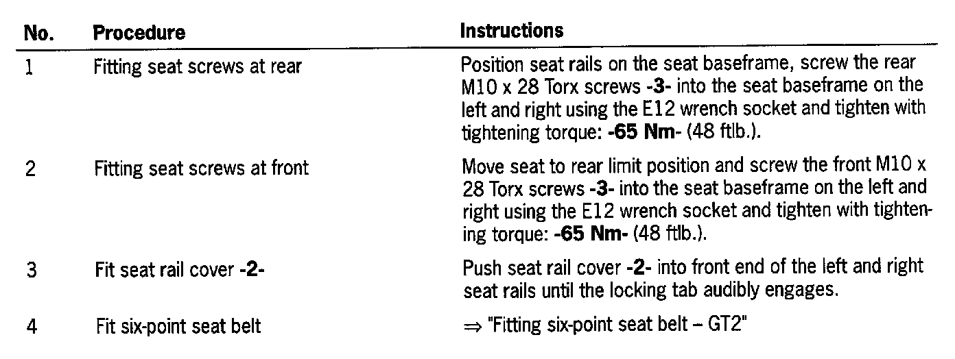 4. Loop technique for fastening the seat belt to the bucket seat cross member