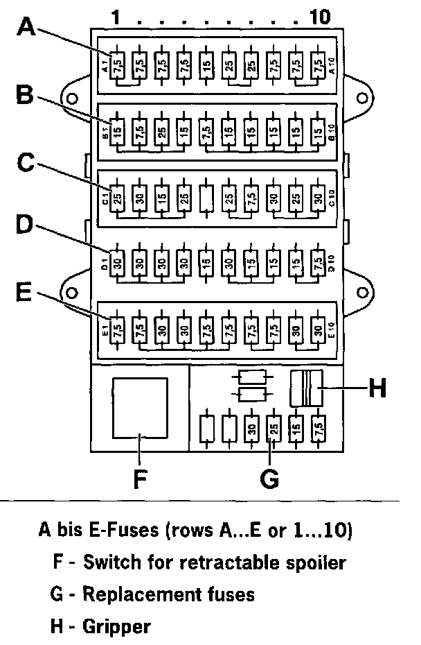 Note: If the power windows should fail, check fuse C3 (15 A) in addition to fuse D1 (30 A).