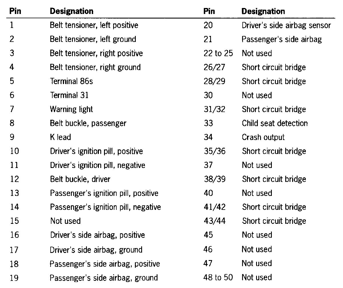 Wiring Harness Plugs For Airbag Triggering Unit