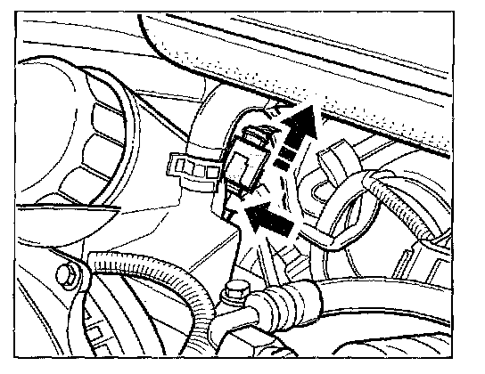 - Open the omega clip on the left side of the air cleaner housing and take out the electrical wire of the hot film mass air flow meter.