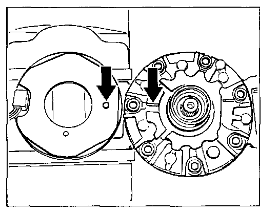 1. Place the magnetic coil on the compressor housing (the locking pin must engage in the locking hole).