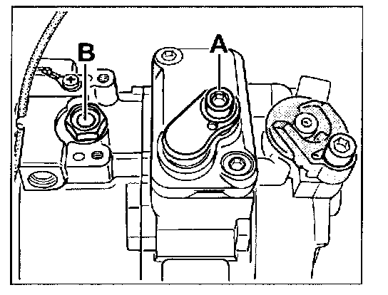 2. Open the oil filler screw -B- on the compressor.