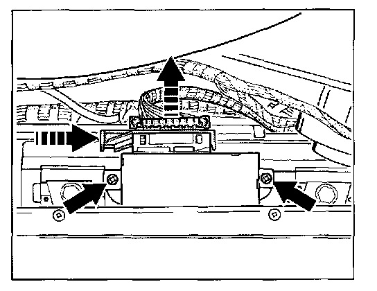 NOTE: The control module is fastened on the right side of the dashboard beneath the passenger airbag unit!