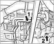 3. Unscrew oil drain plug -2- and let oil drain off into a suitable container.
