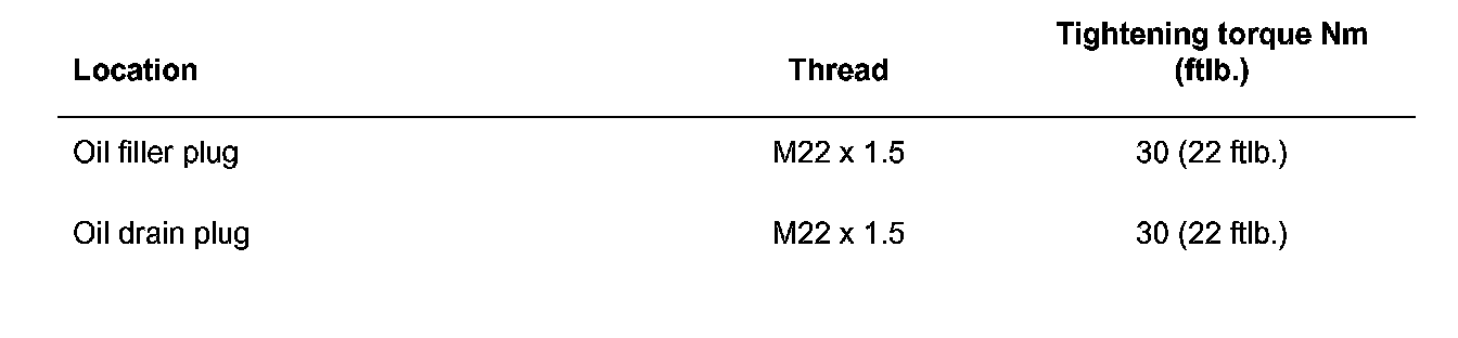 Tightening torque: 30 Nm (22 ft. lbs.)