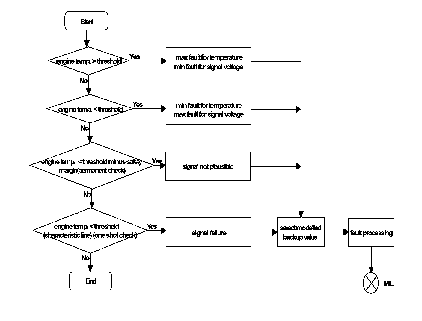 Range checks for minimum and maximum temperatures are continuously performed.