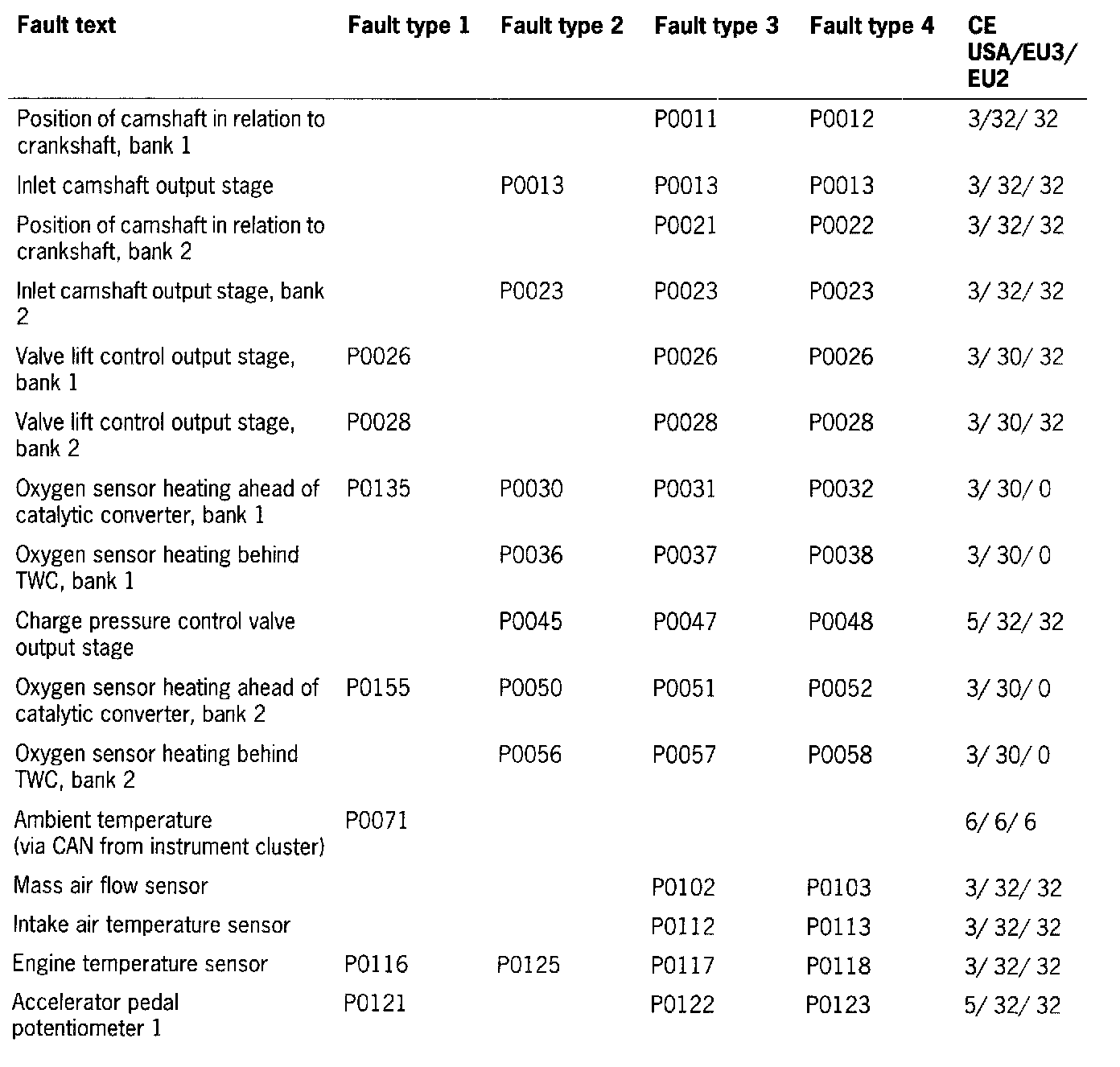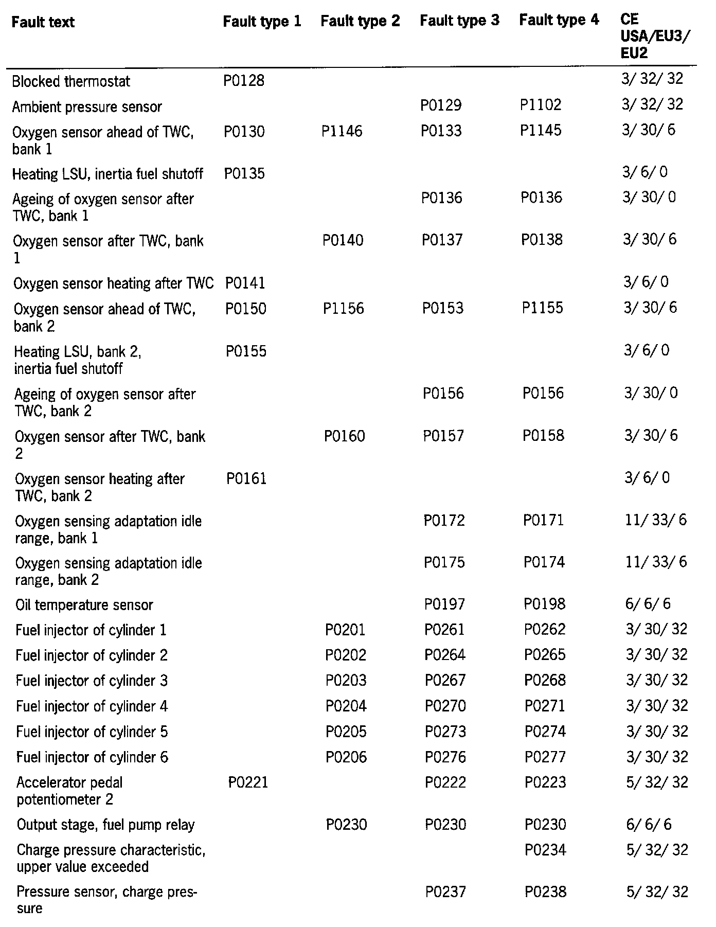 **: In the event of oxygen sensor faults, the fault types have a different meaning.