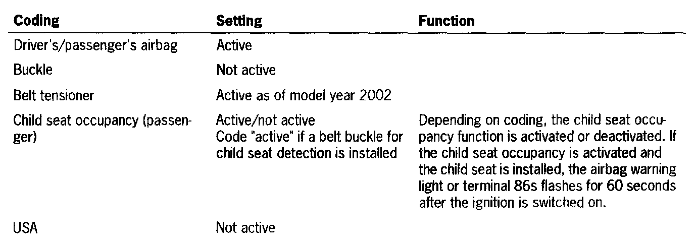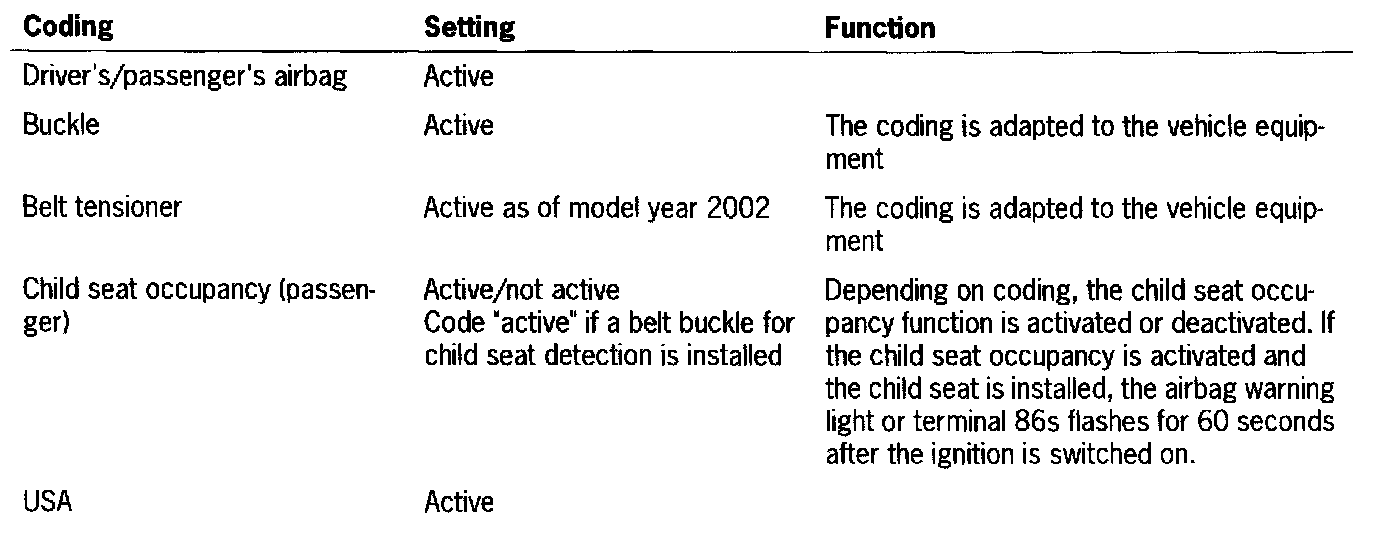 After the airbag triggering unit is replaced, the coding must be adapted to the vehicle equipment.