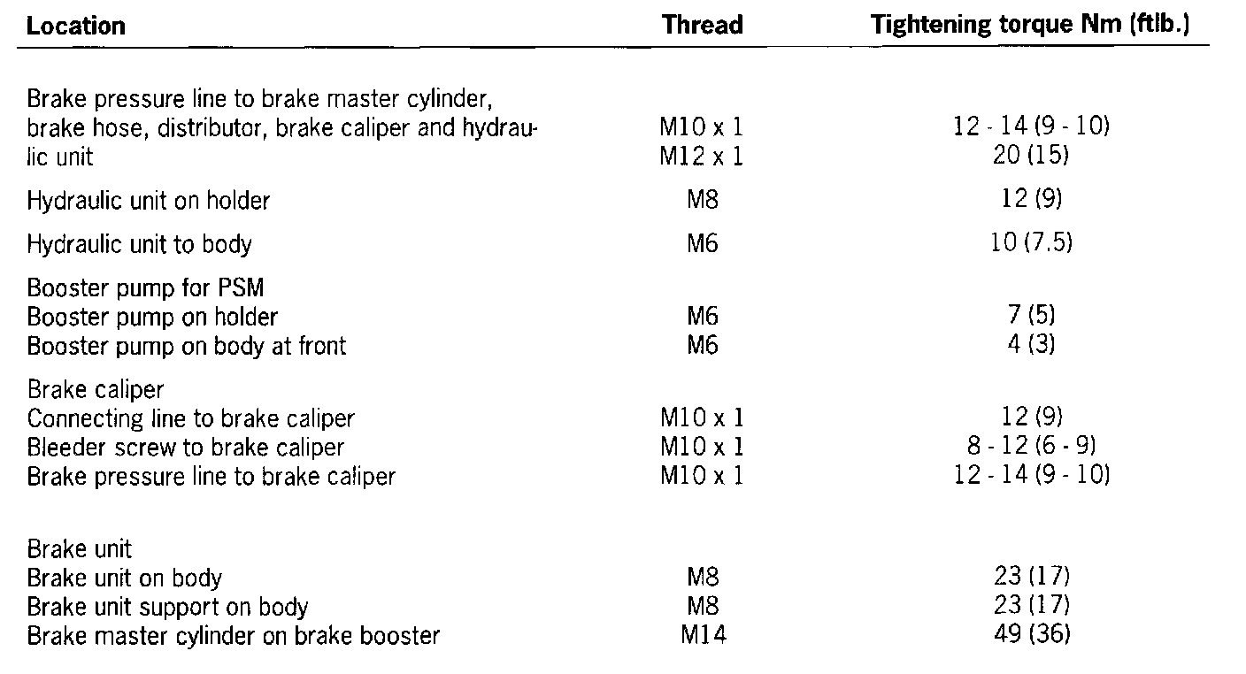 Tightening Torques For Brake Hydraulics