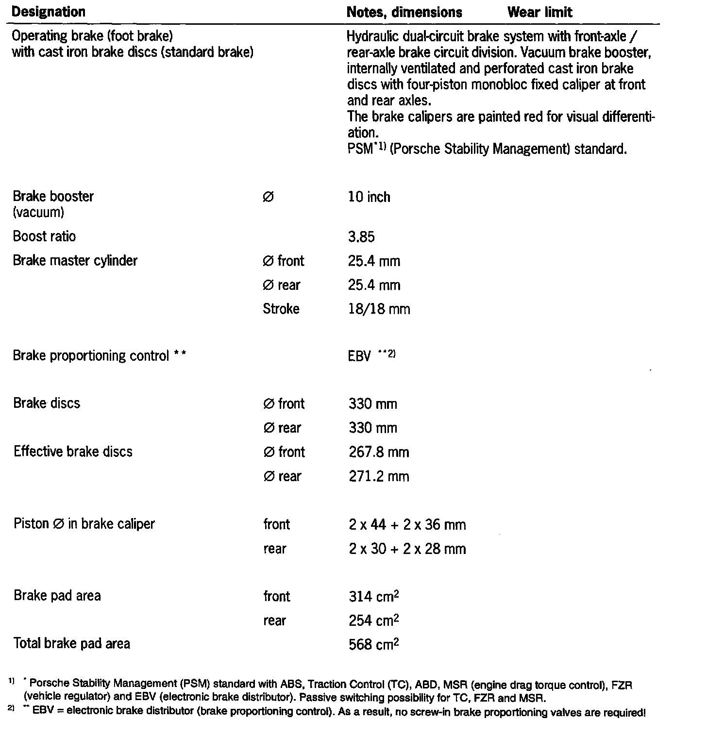 Wear limit technical data - Turbo with ceramic brake discs (PCCB]