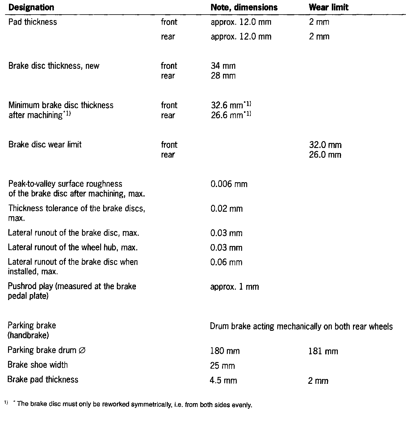 Wear Limit Technical Data - Turbo With Cast Iron Brake Discs