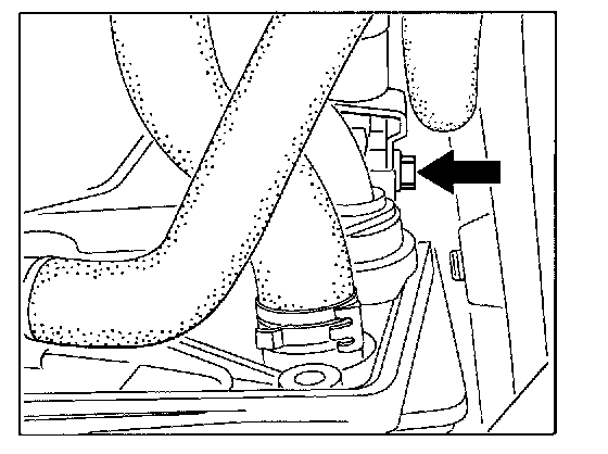 13. Press the coolant hoses to one side and carefully remove the starter downwards from the holder.