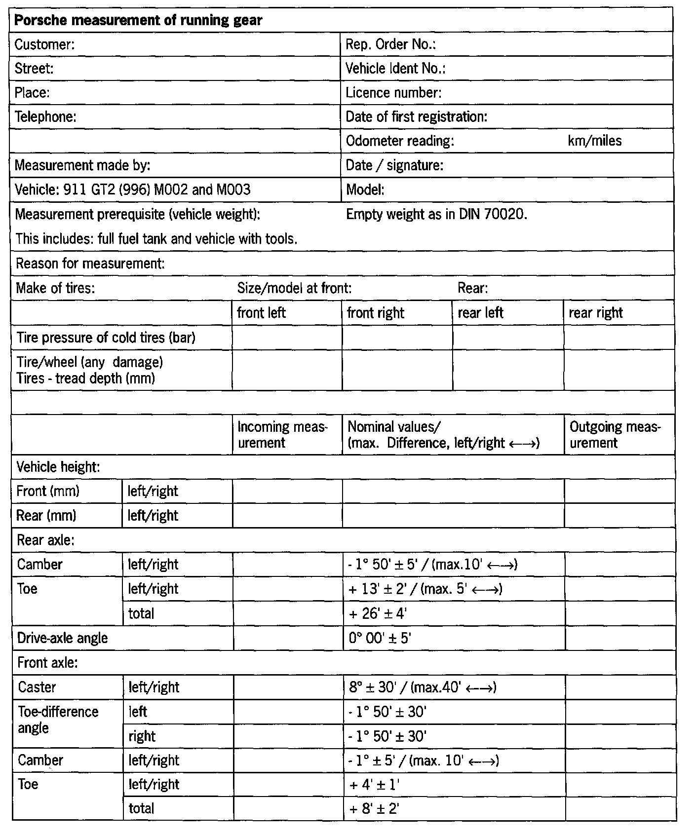- The alignment cards can be used for all 911 GT2 (996), M002 = street vehicle and M003 = Club Sport version.