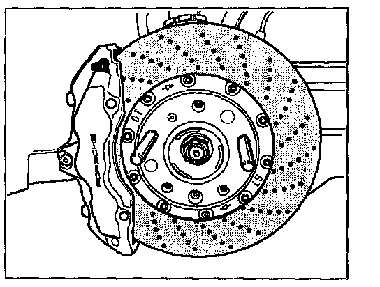 As the GT2 is equipped with PCCB (Porsche Ceramic Composite Brake), use assembly aids (assembly pins) for wheel removal-installation, in order to exclude any possibility of heavy contact of the wheel with the brake disc.