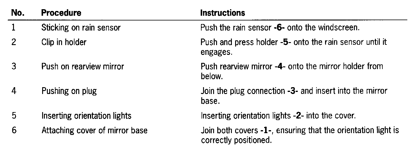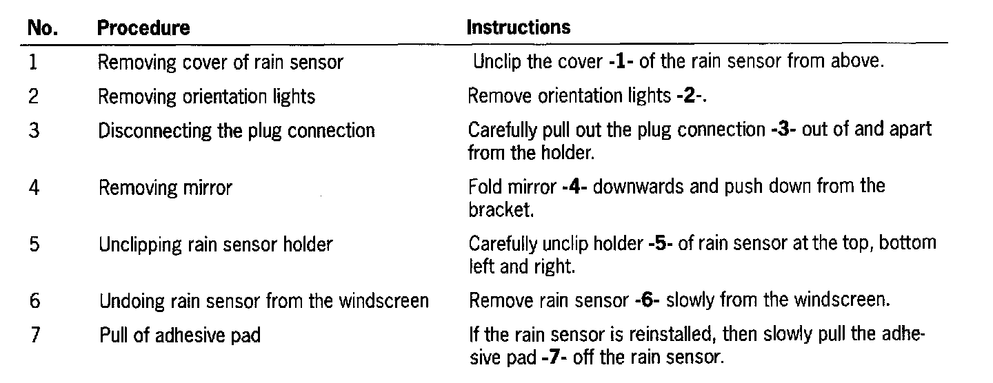 - If the removed rain sensor is reinstalled, the surfaces must be free of adhesive residues. Do not use harsh cleaning agents. Stick the adhesive pad onto the rain sensor at a temperature of approx. 20 degree C.