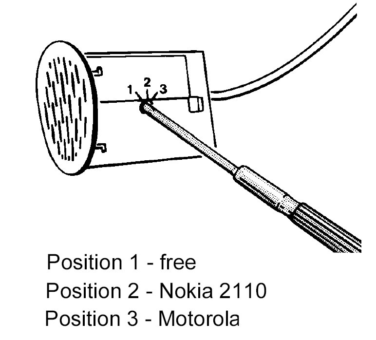 NOTE: There is an adjustment possibility on the hands-free microphone for adapting it to the telephone system installed in the vehicle. The following positions must be set for the Nokia 2110 or Motorola: