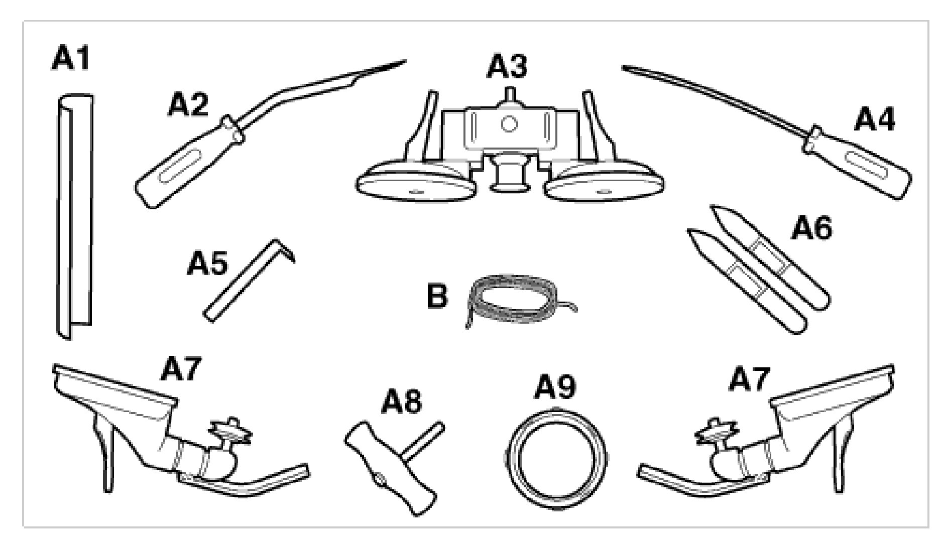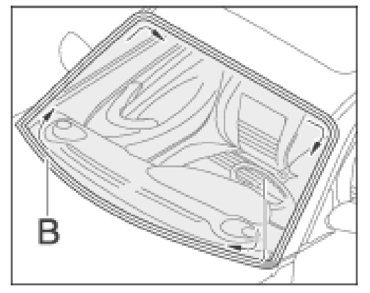 a. Pull cutting thread -B- in the direction of the arrow through the gap between the glass and the body. Use filler -A6- if necessary.