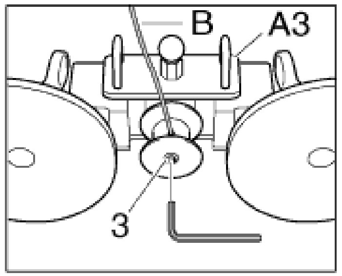 c. Attach cutting thread -B- firmly with the clamping screw -3-.