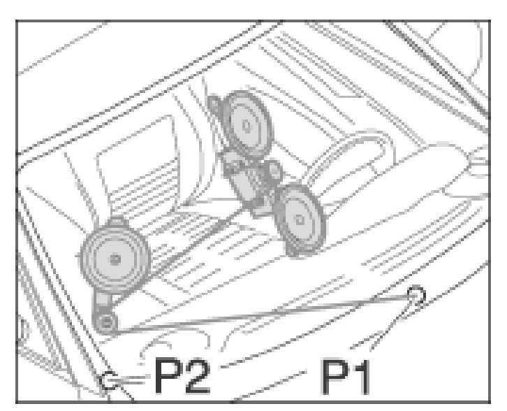 a. Attach the loose end of the cutting thread -B firmly at a suitable point on the body with the fastening screw -2- of a component (e.g. wiper motor fastening). To do this, unscrew the fastening screw, wind the cutting thread -B around the screw and tighten the fastening screw again.