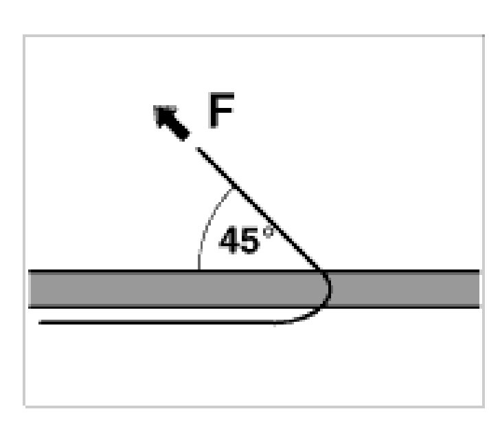 Unfavourable angle (strong traction required)