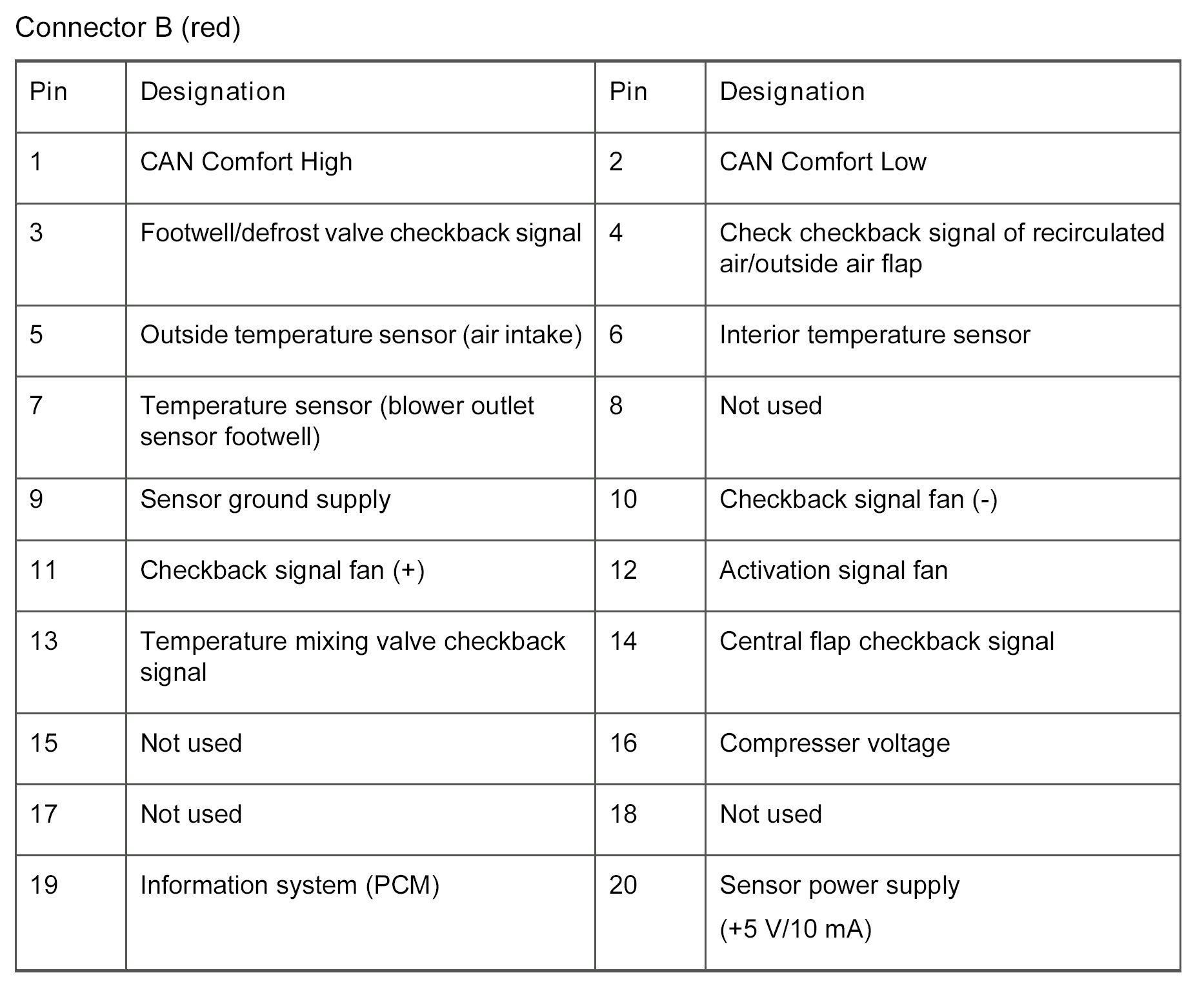 - The two connectors, A and C, are replaced by networking (used by CAN-Comfort Bus).