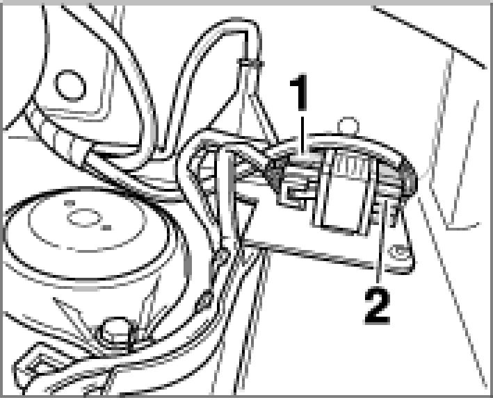 2. Disconnect the plug connection in the left engine compartment -2- for the oxygen sensor in front of catalytic converter. To do this, pull out the black connector out of the holder first.