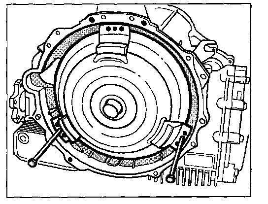 2. With transmission in horizontal position, remove the converter. Use two M8 x 120 screws for this purpose.