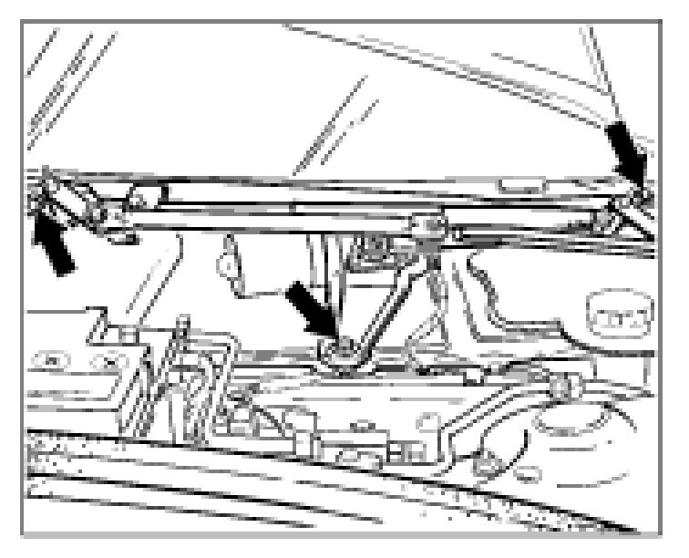 6. Carefully remove the wiper link with wiper motor to the front.