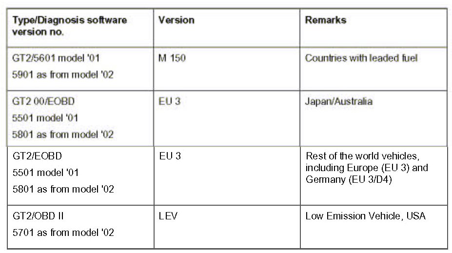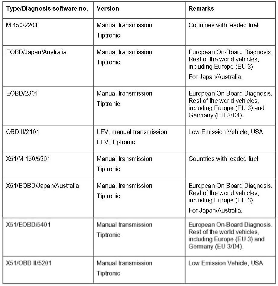 - The table shown is included in the software status 11.0, Porsche System Tester 2.