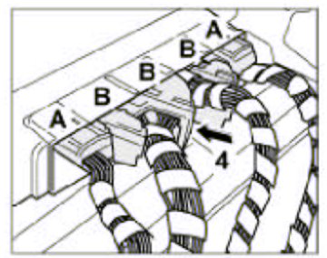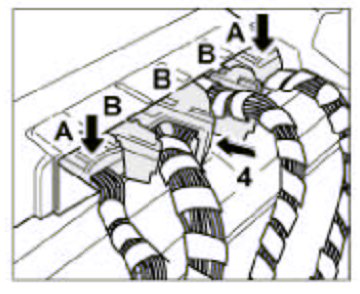 6. Push in locking element -arrow- of connectors -Band actuate the latching lever -4-.