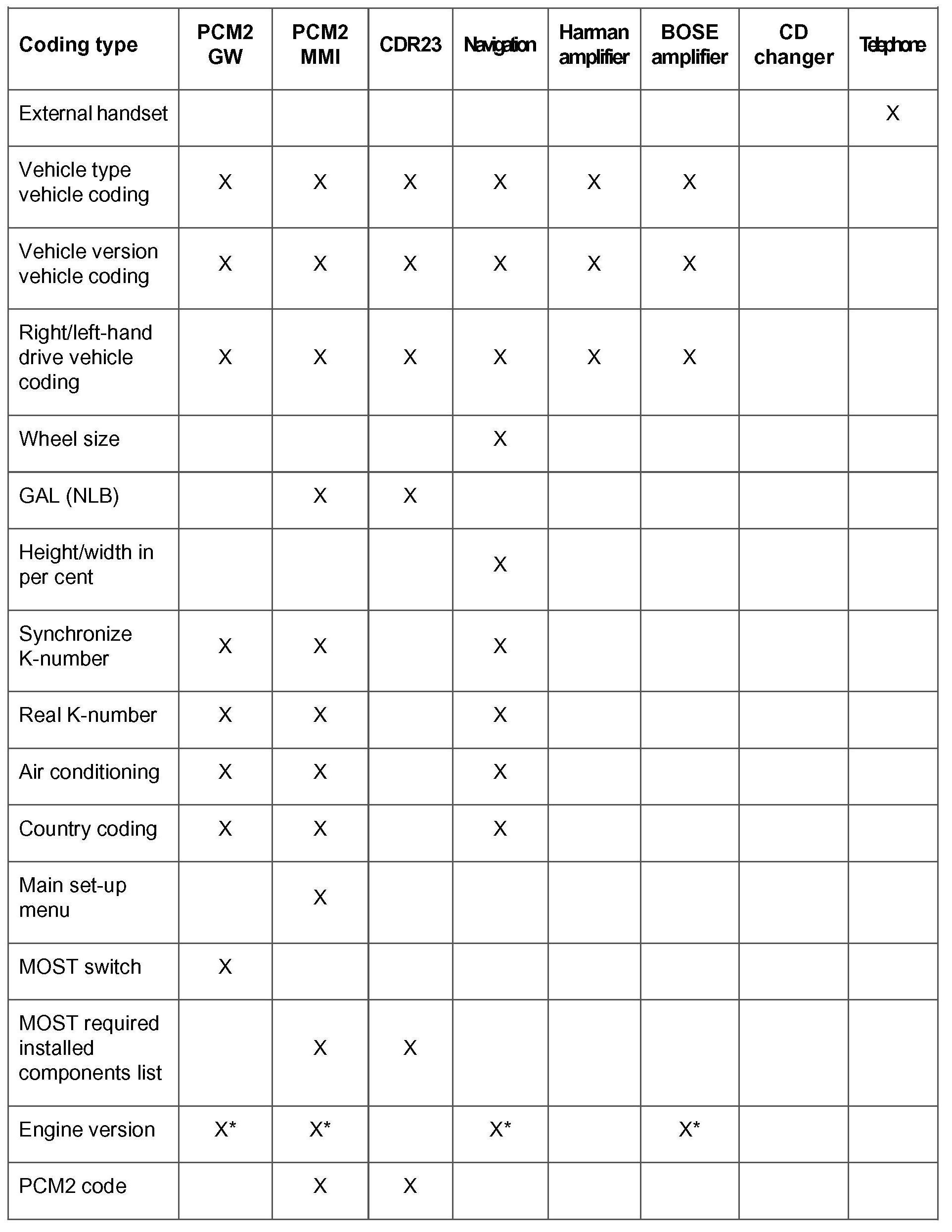 Under this menu item, the PCM2 GW corresponding to the vehicle version can be coded.
