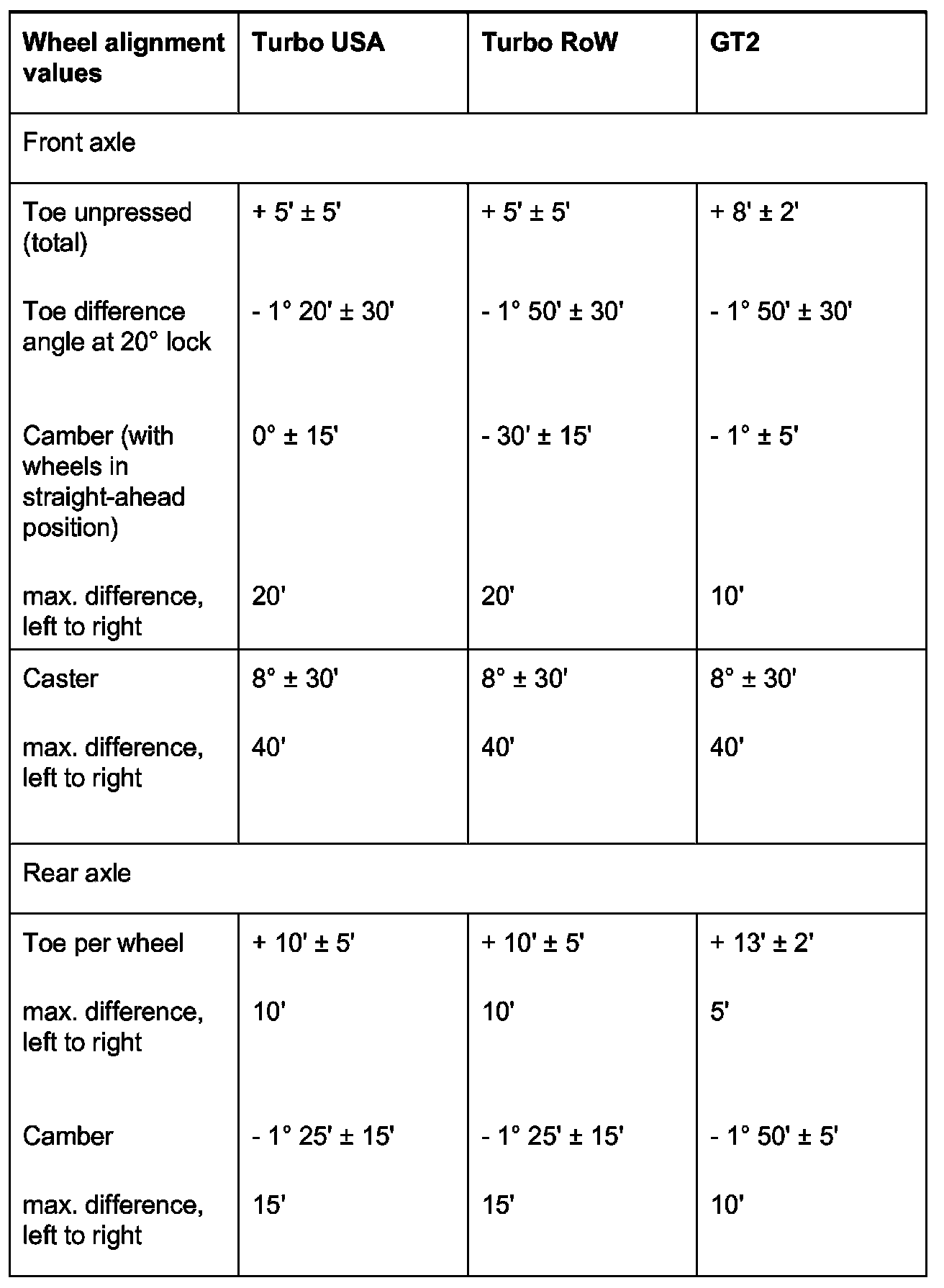 The toe-difference angle value is also influenced by the vehicle height! For this reason the measured value must be evaluated accordingly! No action is necessary in the case of small deviations from the toe-difference angle required value, as long as the value to the right and left is almost the same!
