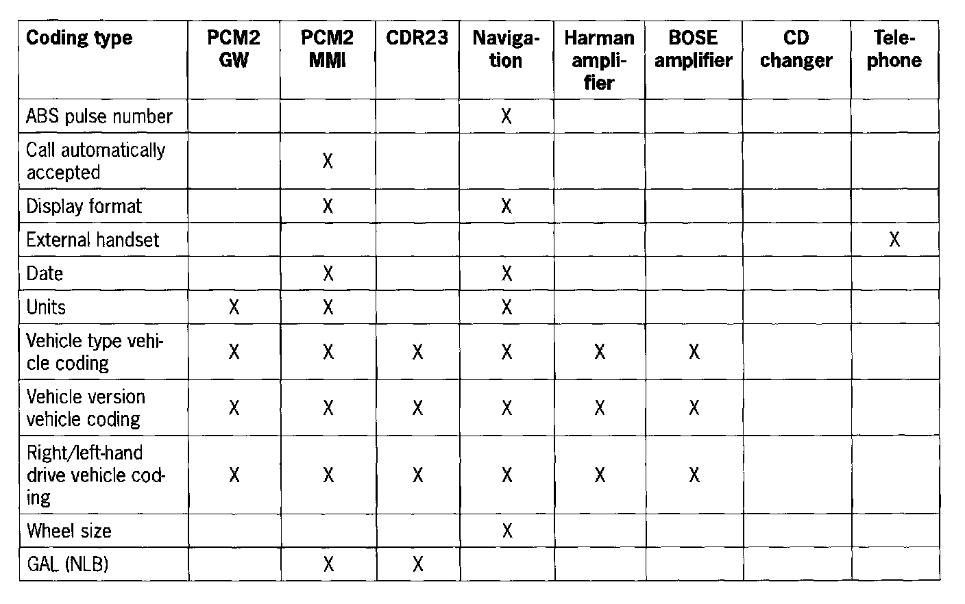 - In the Boxster (986) CDR23 noise-dependent loudspeaker control menu the current coded value is displayed