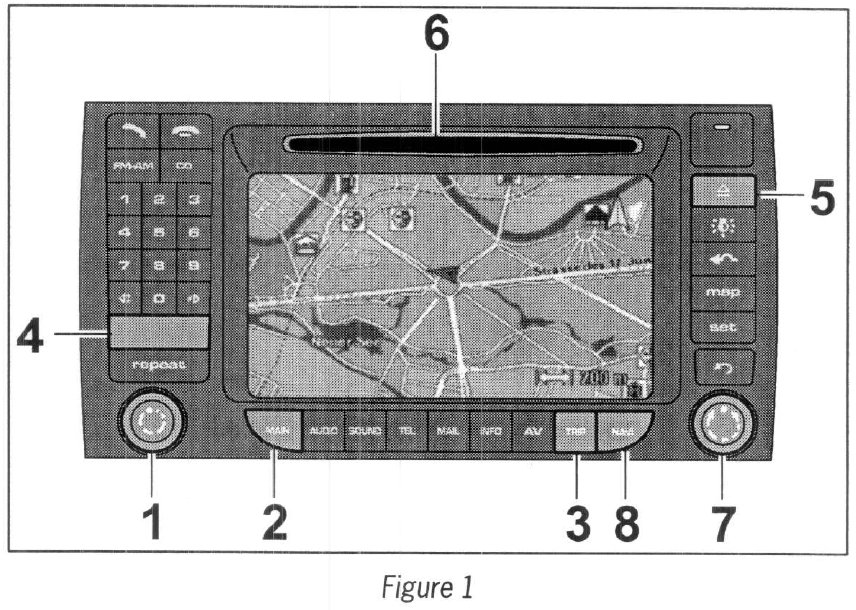 3.2 Press the NAVI button (--> Figure 1 -8-) and confirm the navigation system warning message by pressing the ROTARY KNOB (--> Figure 1 -7-).