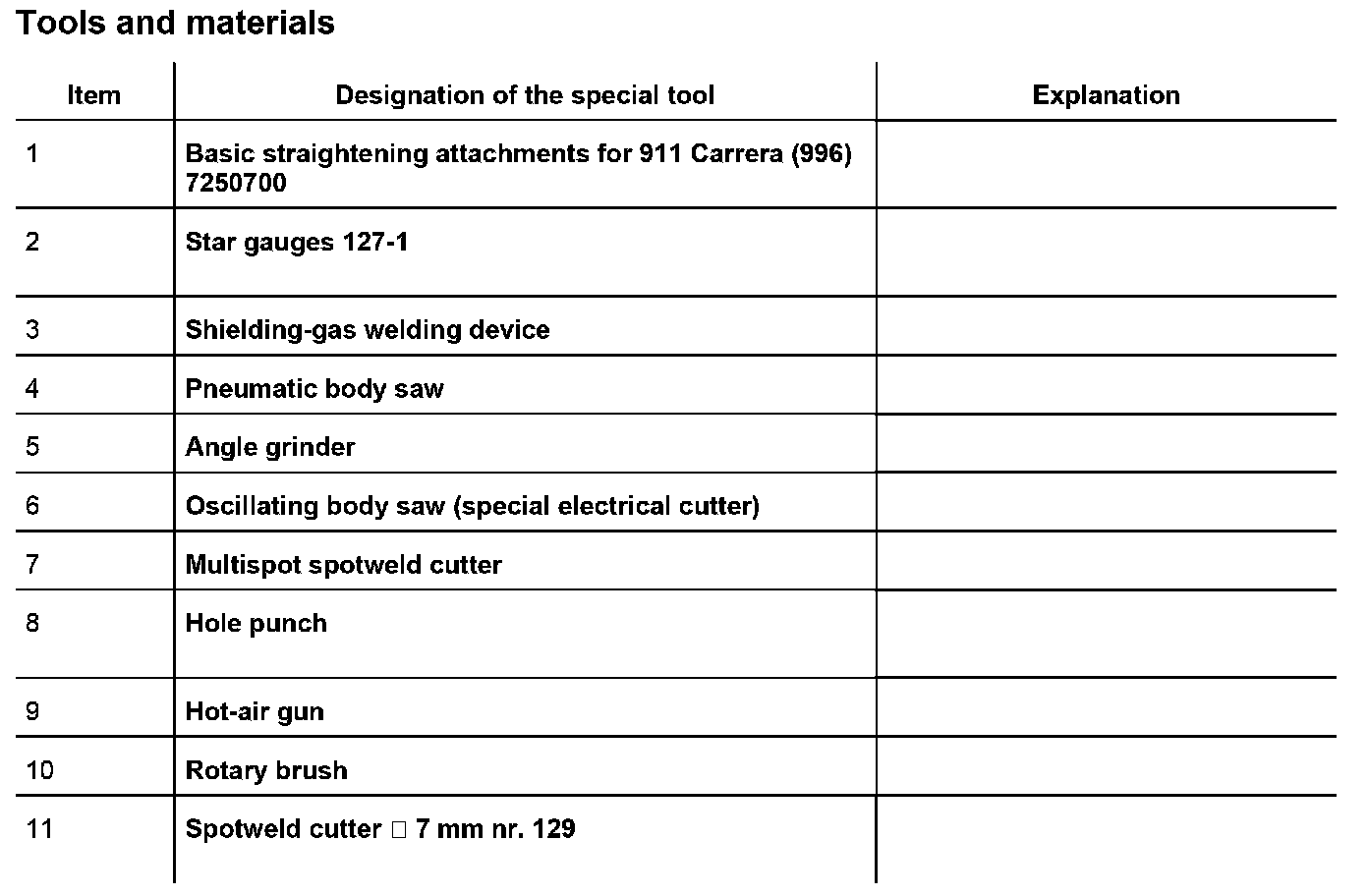 - The accessories in the repair area should be removed, depending on the extent of the damage.