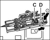 1.2. Pull slide -B- in -direction of arrow 1-.