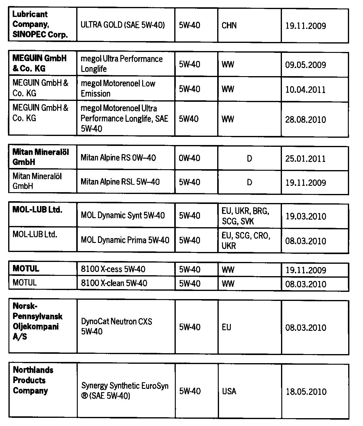 Overview of Approved Porsche A40 Engine Oils (37/08)