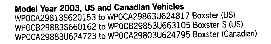 This is to inform you of a voluntary Workshop Service Action on certain 2003 model year Boxster (986) and Boxster S (986) vehicles, equipped with the Porsche sound package (| No.490). Due to a hardware fault in the amplifier there is a possibility that the sound may drop out after the radio is switched on.
