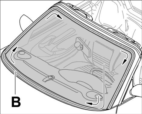 - In order to prevent damage, make sure that the vehicle identification number -C- is completely covered by the protective film when pushing through the adhesive bead.