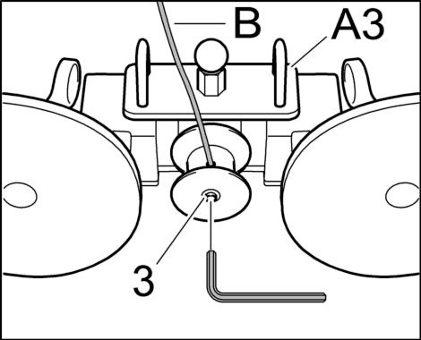 6.3. Attach cutting thread -B- firmly with the clamping screw -3-.