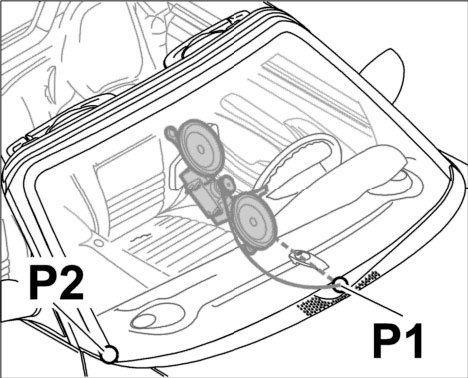 3.5. Draw cutting thread -B- approx. 1m into the passenger compartment.