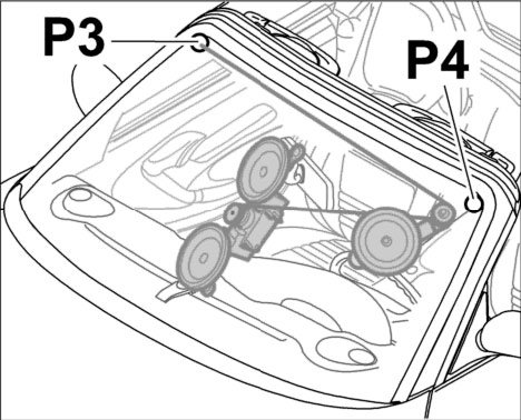 3.1. Push through adhesive bead on the glass on the edge of the vehicle identification number -C- with the awl -A4- from the inside to the outside.