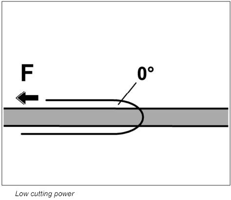 INFORMATION: The power for separating the glass is weaker when the cutting thread is deflected to its maximum point. An angle greater than 90 degrees should be avoided.