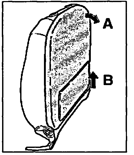 2. Push cushion mount with cover over backrest frame from above -Arrow A- and push towards backrest frame at bottom -Arrow B-.
