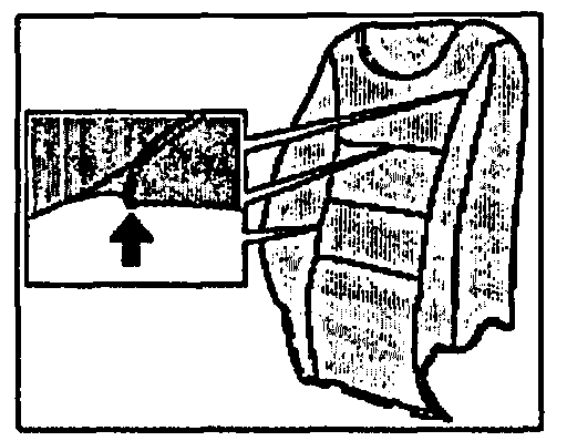 1. Line up cover of cushion mount at top and side sin such a way that seams of cover fit into recesses of cushion mount -Arrow-.