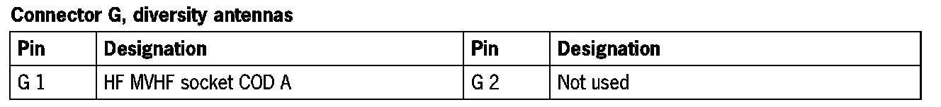 Connector G, diversity antennas