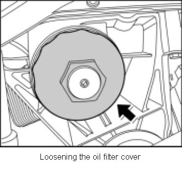 5. Loosen the oil filter cover with a socket (a/f 36). Then check the sealing ring and coat with new engine oil.