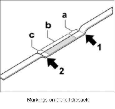 Markings on the oil dipstick (checking engine oil level)