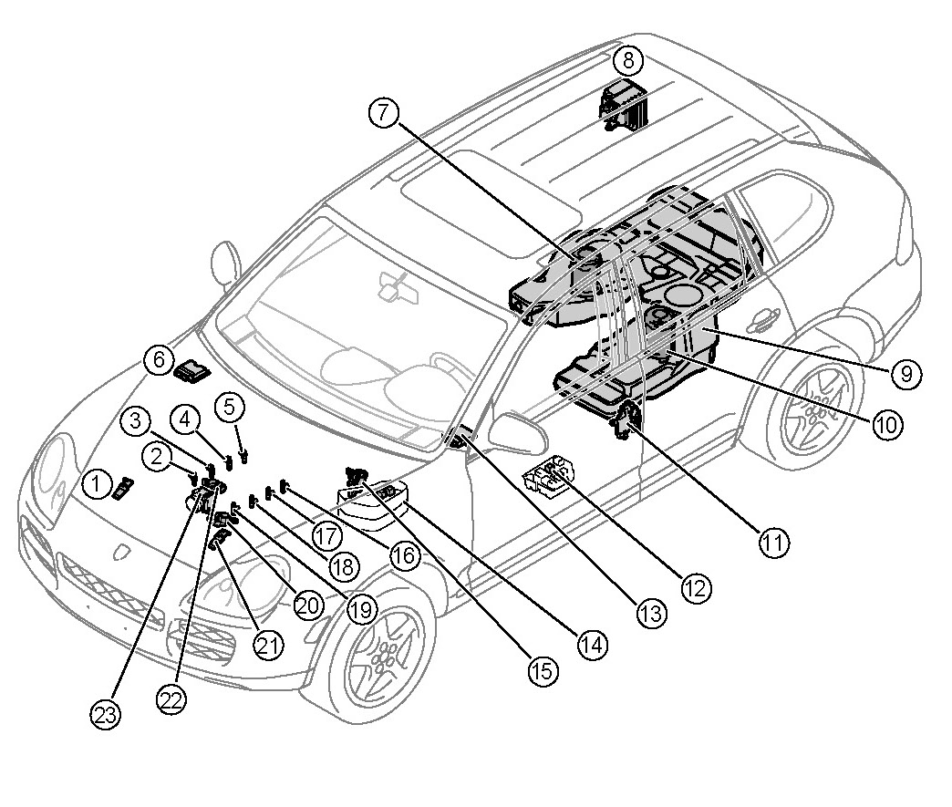 - Function-oriented grouping of components in the vehicle: Position of certain components in the vehicle which allow one or more diagnostic functions when used together. A number of relationships between fault memory entries and different components can be determined by presenting the components in this way.